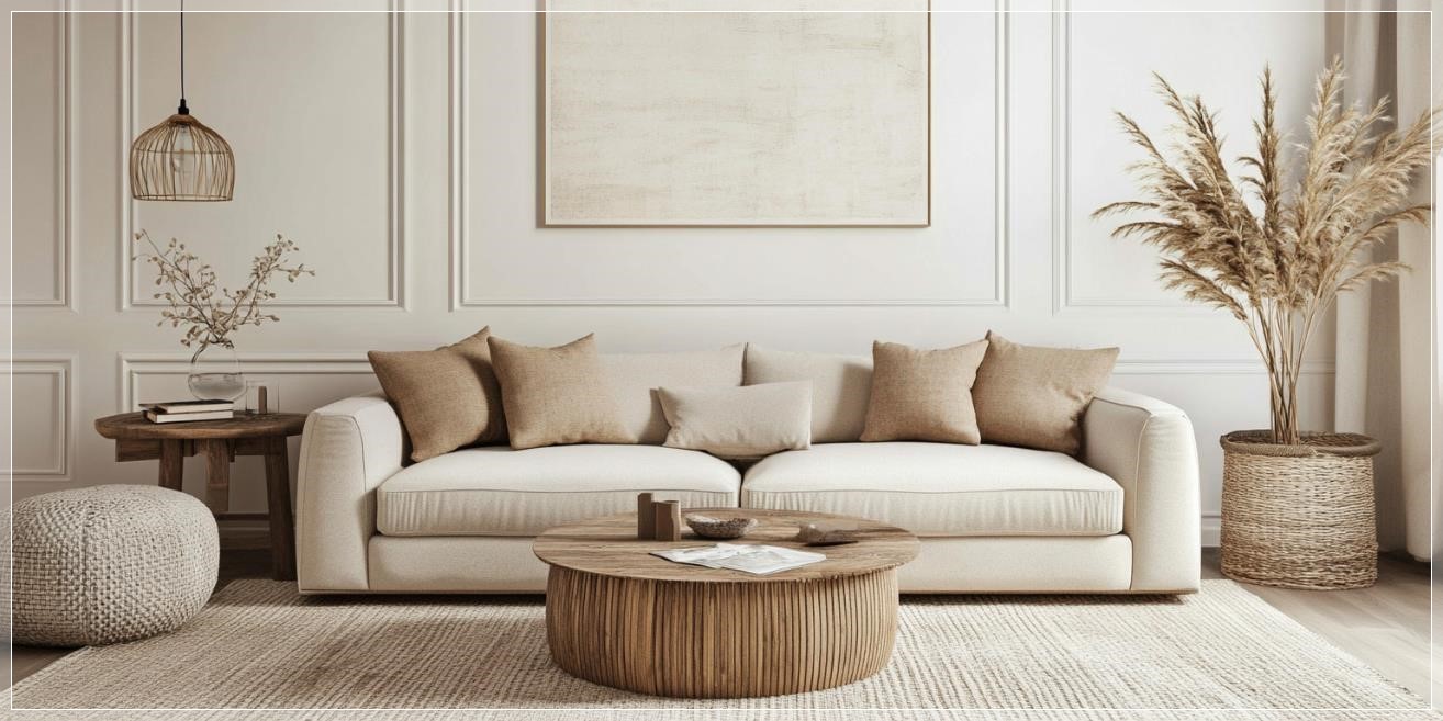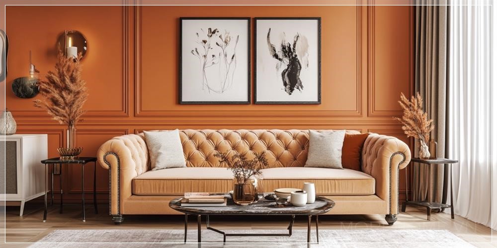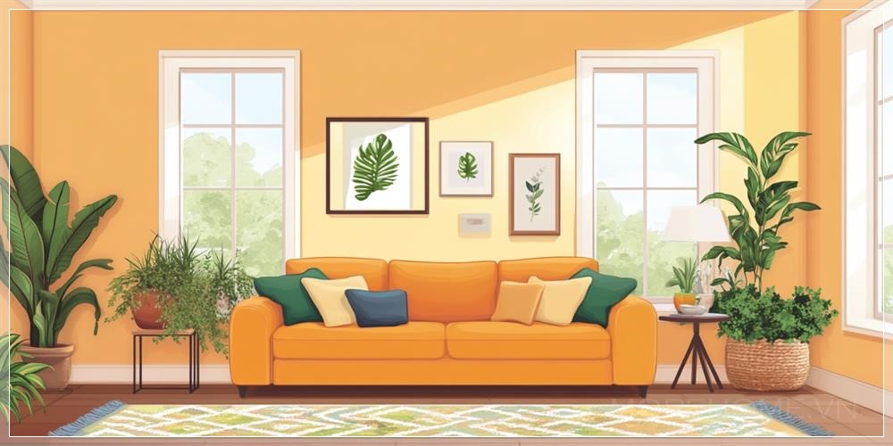 Cozy living room in American style with a sofa. In warm colors. --ar 2:1 --style raw --v 6.1