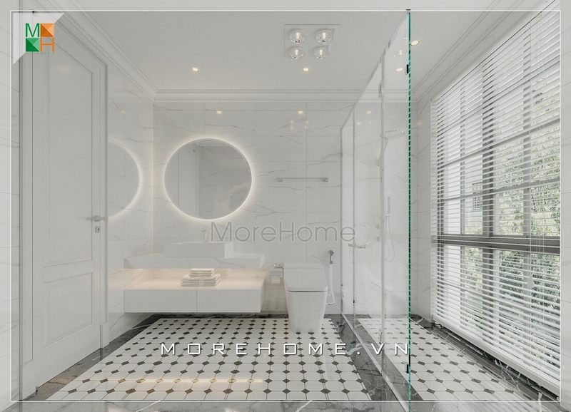 Một bảng màu nhẹ nhàng, như xanh nhạt hay trắng kem, không chỉ tạo cảm giác thư giãn mà còn giúp không gian trở nên rộng rãi hơn. Thêm vào đó, việc sử dụng gạch Mosaic hay đá tự nhiên làm yếu tố nhấn nhá, không chỉ mang lại vẻ đẹp mà còn tạo chiều sâu cho không gian.